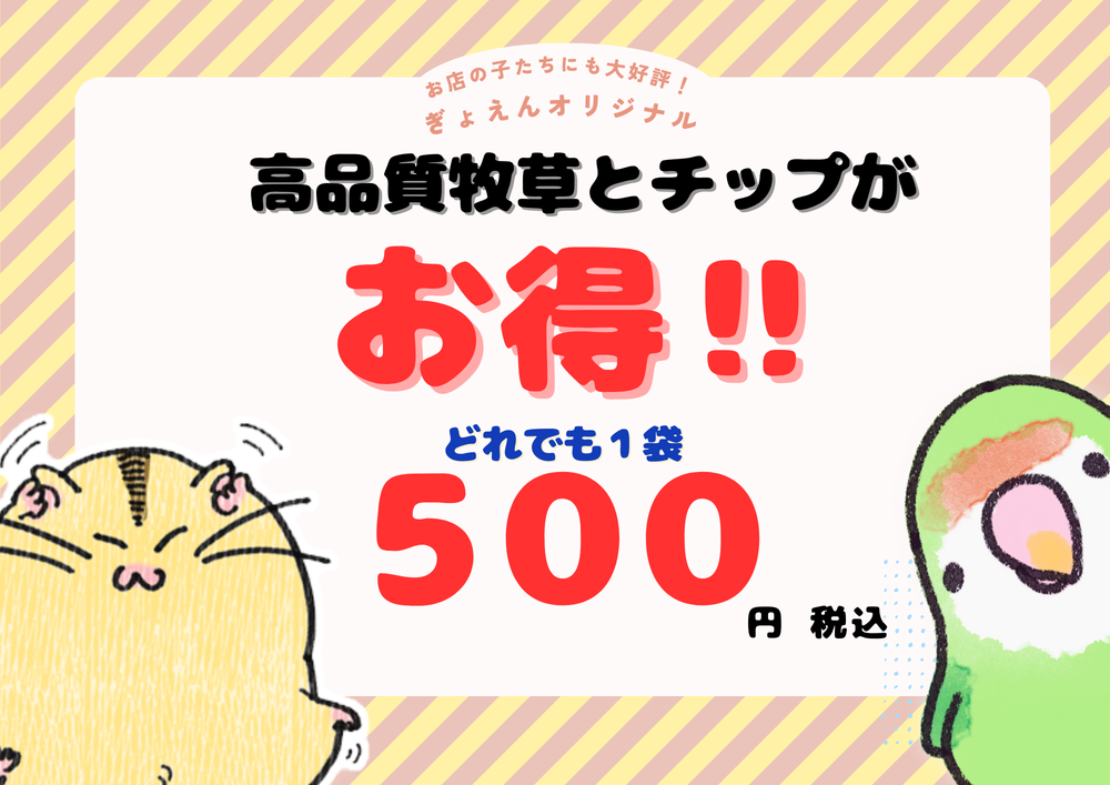 ワンコイン!牧草とチップのお得な袋詰めです! | Pet Space Online ペットスペースぎょえん通販